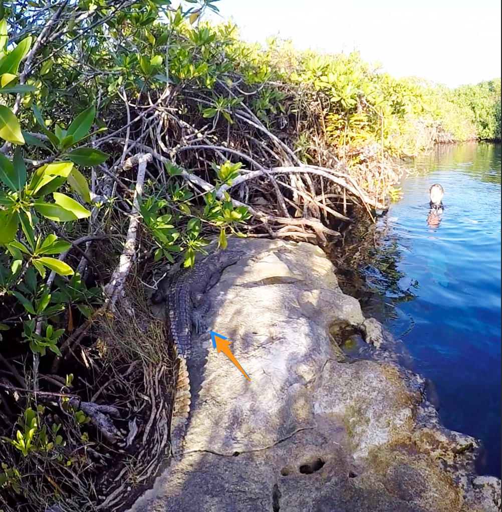 Moments later, I’m in the wetsuit, the ridiculously long plastic things on my feet extending my legs to super efficient fins. In front of Casa Cenote is the clearest water I have ever seen, a sort open air tunnel system about four to six meters deep. The first time I submerge I am struck by the incredible beauty. Giant fish swimming very close to me, I feel I could grab them. So much to explore, this time horizontally, much easier, and so much to see now. Never seen mangroves from underwater. “Watch out for the crocodile”, Pepe goes. “Yeah right”. A couple of seconds later we hang out on the same stone as the crocodile and take pictures. You don’t have to go deep as a free-diver. You learn, better said, practice how to stay longer underwater, you can swim through beautiful underwater tunnel systems with awe-inducing marine life passing by.